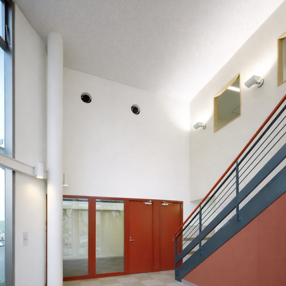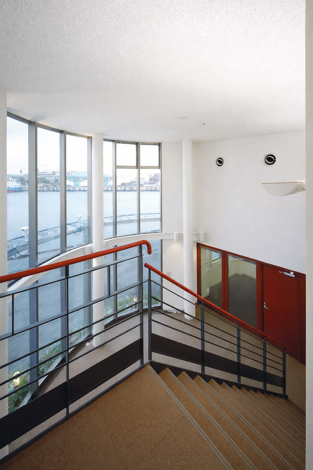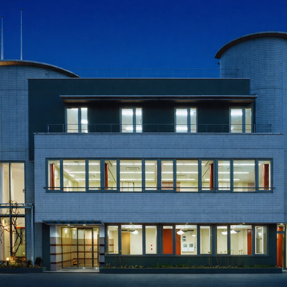 竣工年 2006年 作品名 戸畑港運輸本社ビル 場所 福岡県北九州市 用途建築基準法の分類 オフィスビル 構造 重量鉄骨造 階数 3階 コメント 本建築は港に面した立地特性を生かし、「港を照らす行灯」をイメージして計画した。円筒形のボリュームとガラス面を多用することで、内部の活動や気配が外部へやわらかく表出する構成としている。昼間は海や空を映し込み、港の風景と一体となる軽やかな佇まいを見せ、夜には内部の灯りが行灯のように港を照らす。機能性と象徴性を兼ね備え、港の景観に静かに寄り添う建築を目指した。