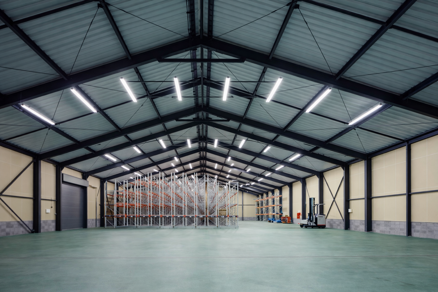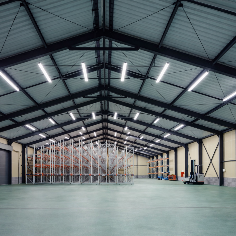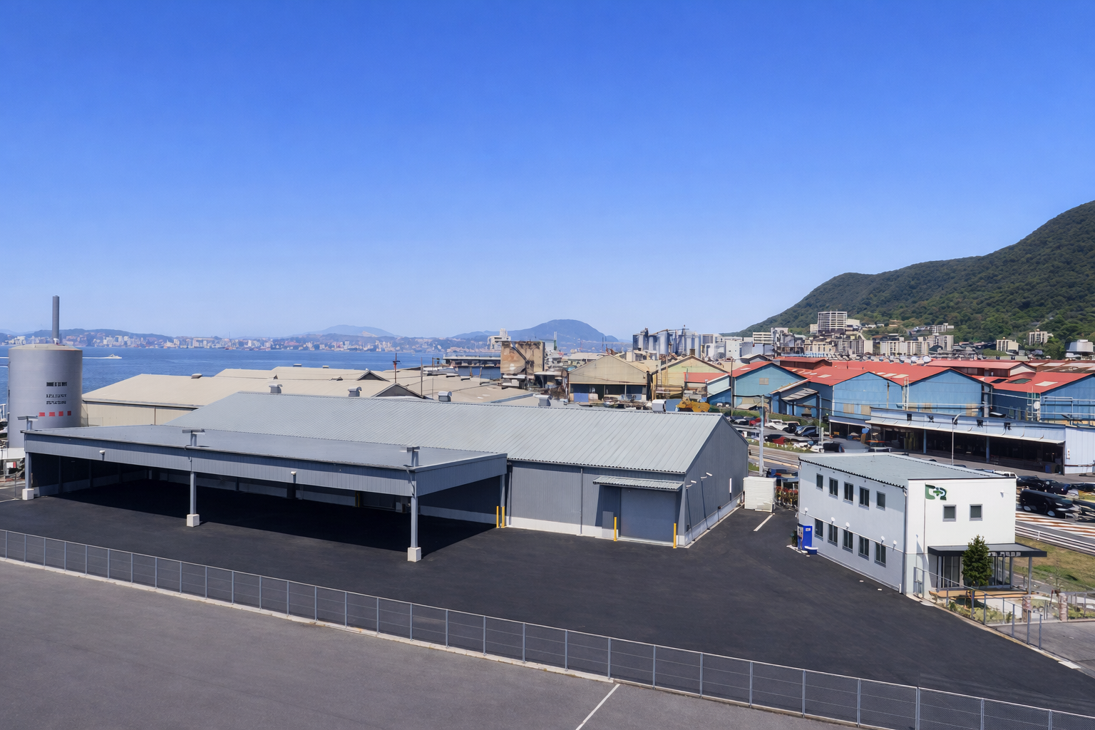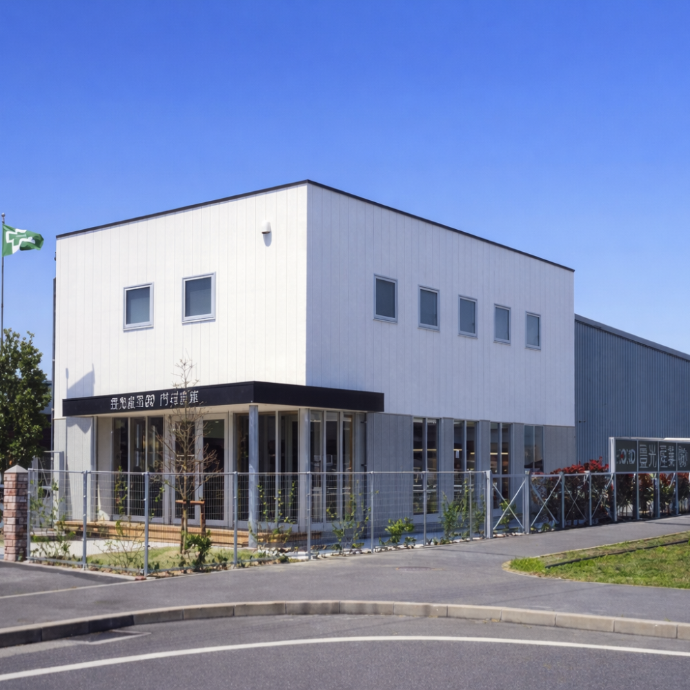 竣工年 2005年 作品名 (仮称)豊光産業倉庫増改築工事 場所 福岡県北九州市 用途建築基準法の分類 事務所 倉庫 構造 重量鉄骨造 階数 2階 コメント 港湾エリアという立地特性を踏まえ、物流機能の合理性と周辺景観との調和を両立させた倉庫・事務所計画とした。シンプルで統一感のある外観は、業務施設としての視認性と耐久性を重視しつつ、街並みに過度な主張をしない落ち着いた佇まいを目指している。内部は無柱に近い大空間とし、将来的なレイアウト変更にも柔軟に対応可能な構成とした。明快な動線計画と十分な作業環境を確保することで、日々の業務効率を高め、長く使い続けられる実用性の高い建築を実現している。