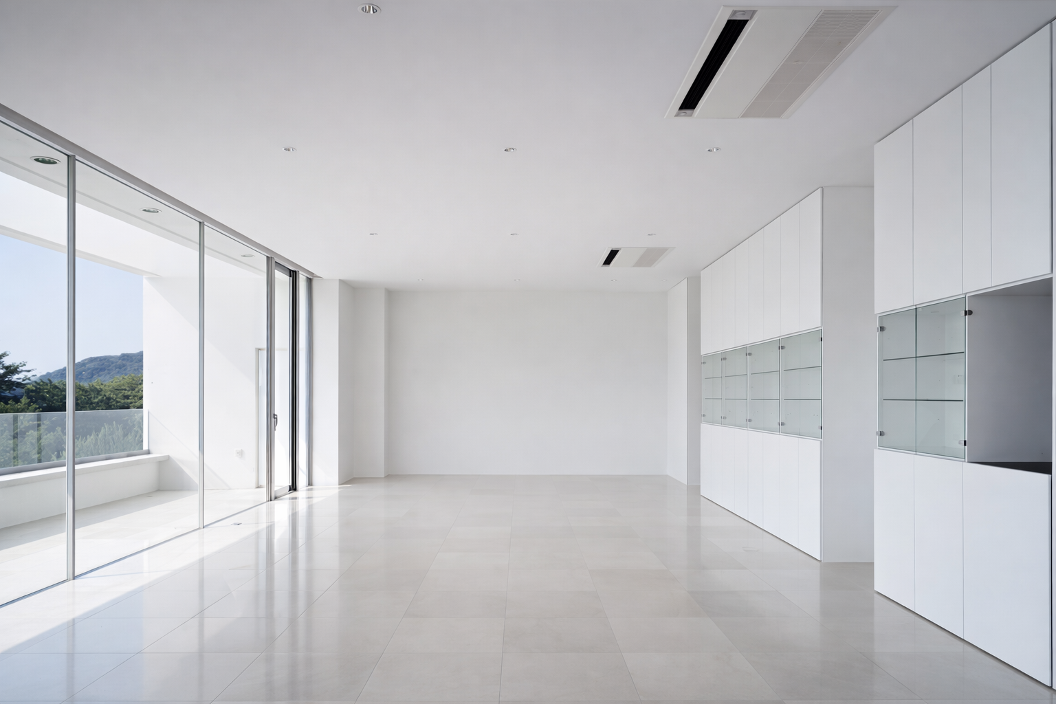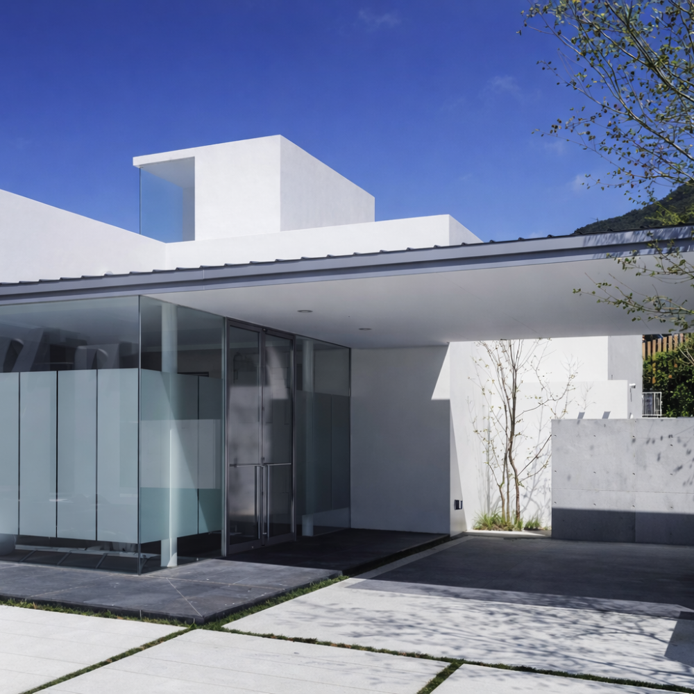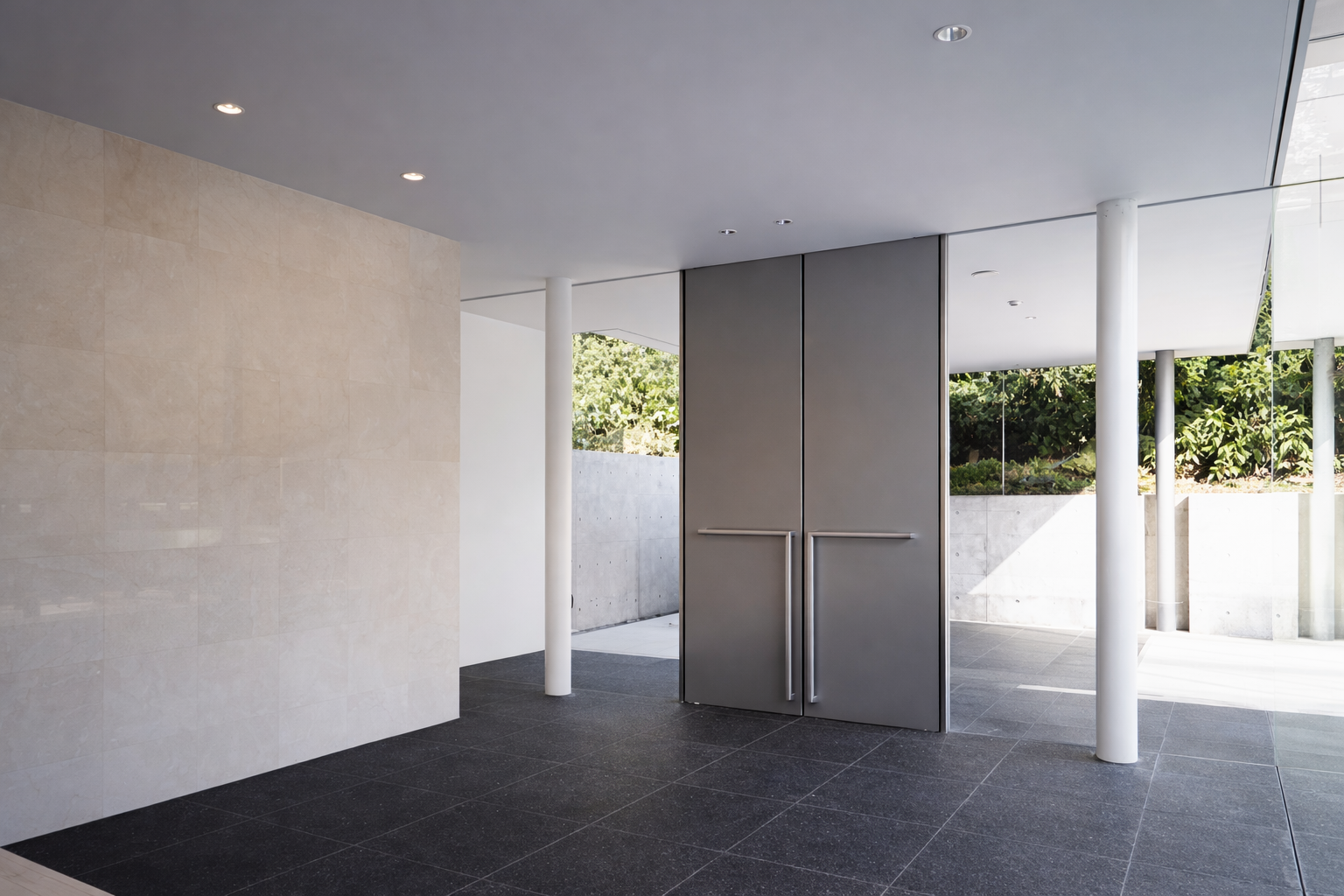 土地の高低差に寄り添いながら、住まいとスタジオをひとつにまとめています。