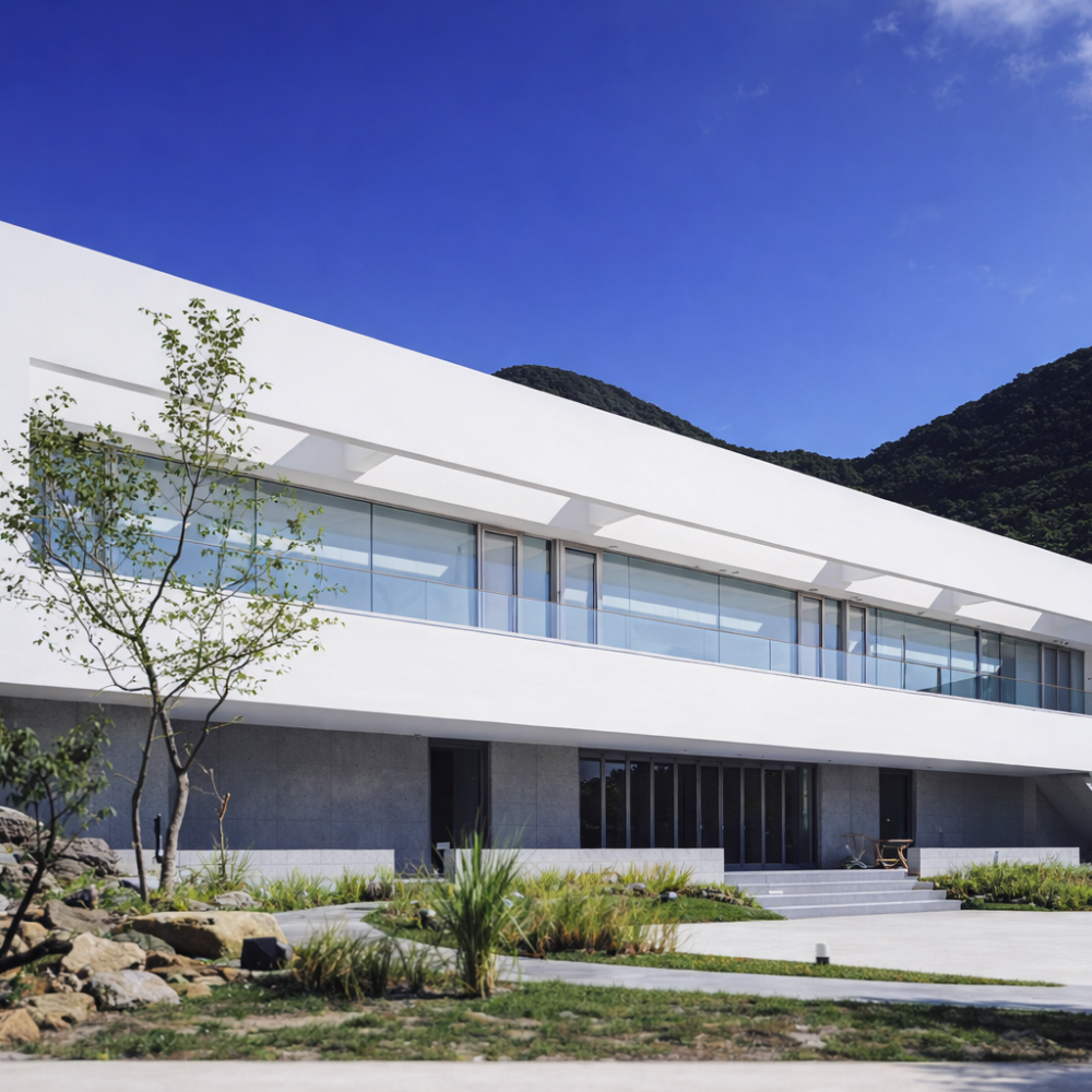 この建物は、家具の「引き出し」をイメージしたかたちをしています。