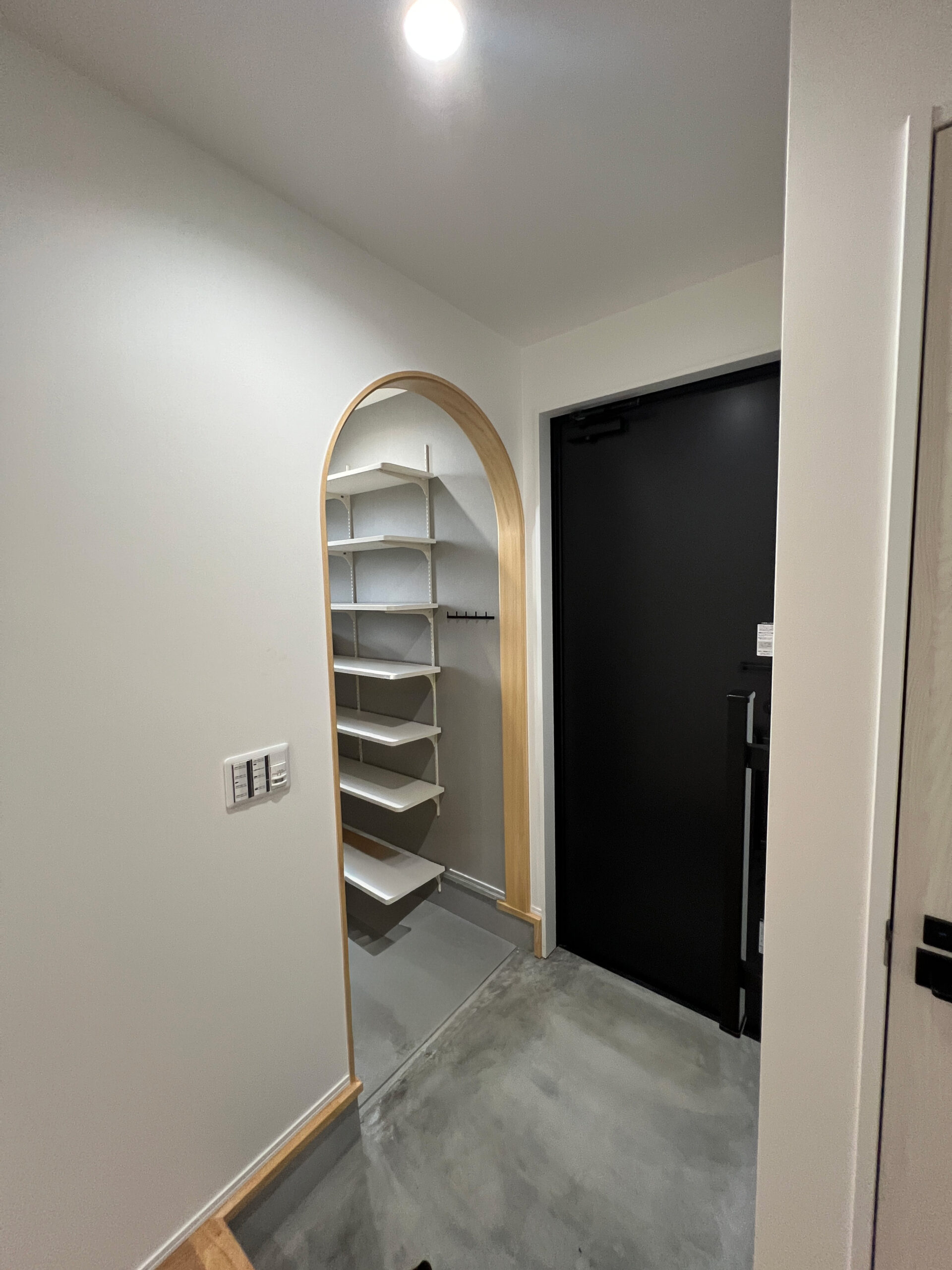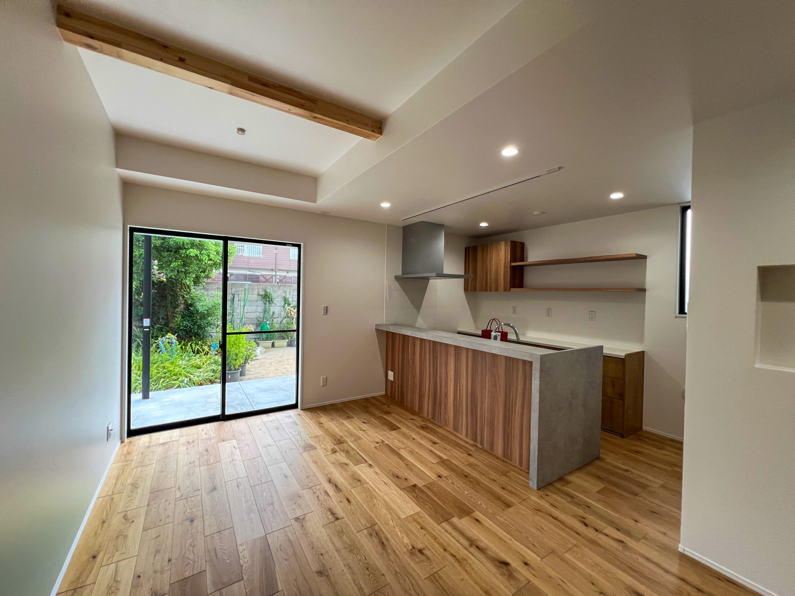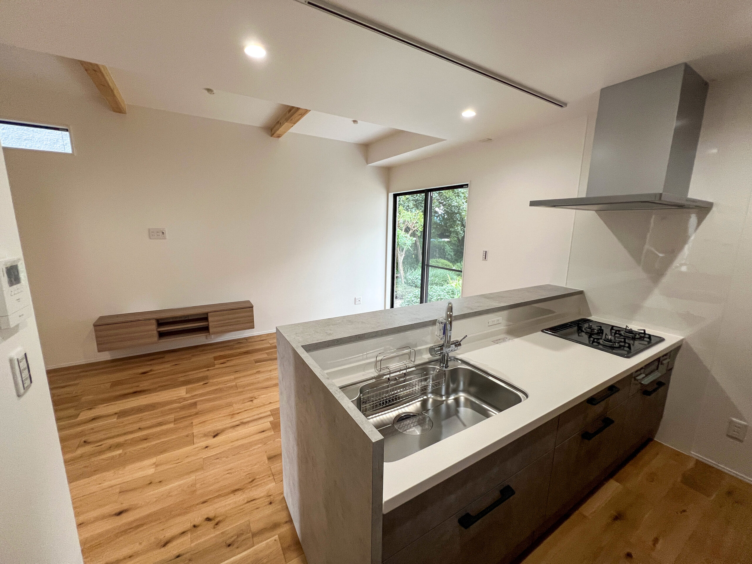 親子3人が、毎日を無理なく心地よく過ごせることを大切に計画した住まいです。家族が自然と集まる時間と、それぞれが自分の時間を大切にできる距離感の両立を意識し、空間のつながり方や配置を工夫しました。リビング・ダイニング・キッチンは一体感を持たせつつ、どこにいても落ち着ける居場所が生まれる構成としています。床や天井、造作家具には木のあたたかみを感じられる素材を取り入れ、暮らしの中で少しずつ愛着が深まる住まいを目指しました。玄関や水まわりには、使いやすさと片付けやすさを考えた収納と余白を設け、日常が自然と整う工夫をしています。